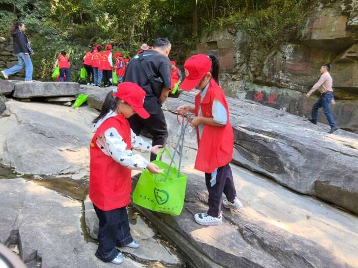 山谷流泉景區(qū)里,景區(qū)志愿者為招募而來(lái)的小學(xué)生志愿者穿上紅色小馬甲,戴上小紅帽,送上國(guó)旗貼紙和小國(guó)旗,并帶上火鉗、方便袋等小工具在景區(qū)拾撿垃圾,參與古箏學(xué)習(xí)、弈棋、朗誦古詩(shī)等豐富多彩的互動(dòng)志愿活動(dòng),一抹抹“中國(guó)紅”流動(dòng)在景區(qū)里,大家都感受到奉獻(xiàn)的快樂(lè),一粒粒“愛(ài)”的種子悄然播種在小志愿者的心田。與此同時(shí),志愿者們還在山谷流泉文化園、天柱山地質(zhì)公園博物館開(kāi)展免費(fèi)講解、宣傳天柱山歷史文化、天柱山故事等服務(wù)。